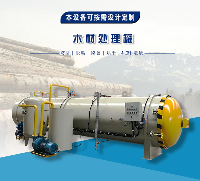 木材罐廣泛應(yīng)用于木材和板材的加工制作中,能實(shí)現(xiàn)木材的染色、防腐、烘干、阻燃、殺菌、防蛀等多種工藝要求,是木材建材加工和家具制作中重要的生產(chǎn)設(shè)備。